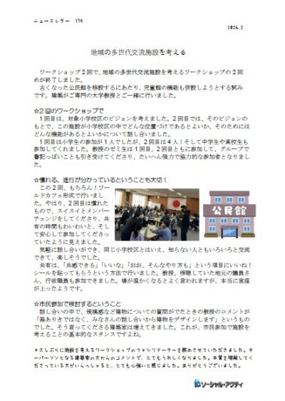 ニュースレター第174号 「地域の多世代交流施設を考える」ご覧くださいませ。